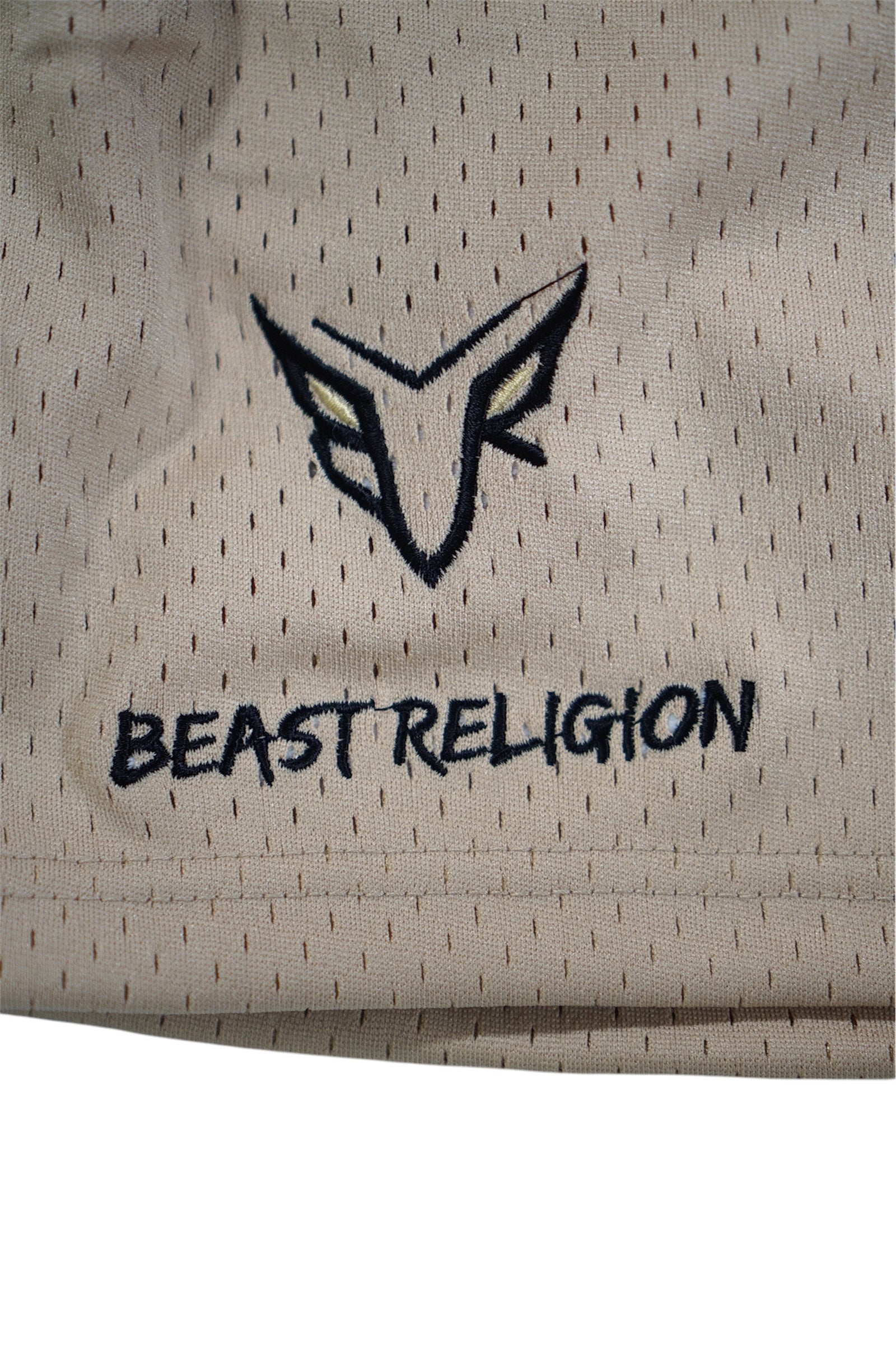 The Beast Religion Sport Dri-FIT Mesh Diamond Shorts are imported.